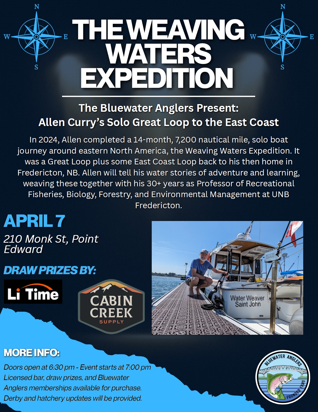 Topic: His Weaving Waters Expedition. He will weave in fishing and also expressed that he is happy to answer questions from the audience related to fishing, biology and his expedition. Feel free to send a question ahead of time and I will forward to Allen so he can ensure he’s prepared to answer.